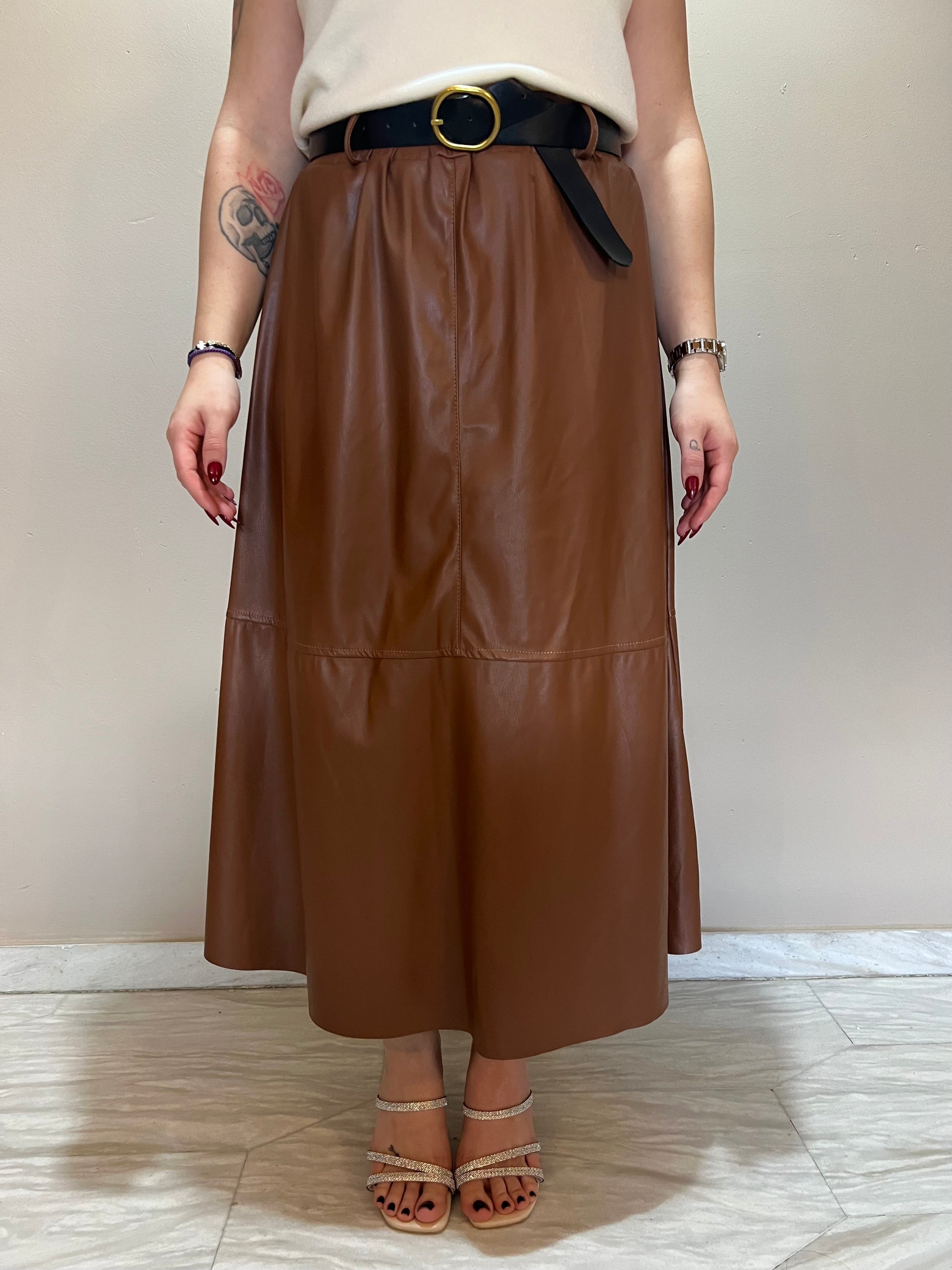 Μaxi δερμάτινη φούστα με ζώνη